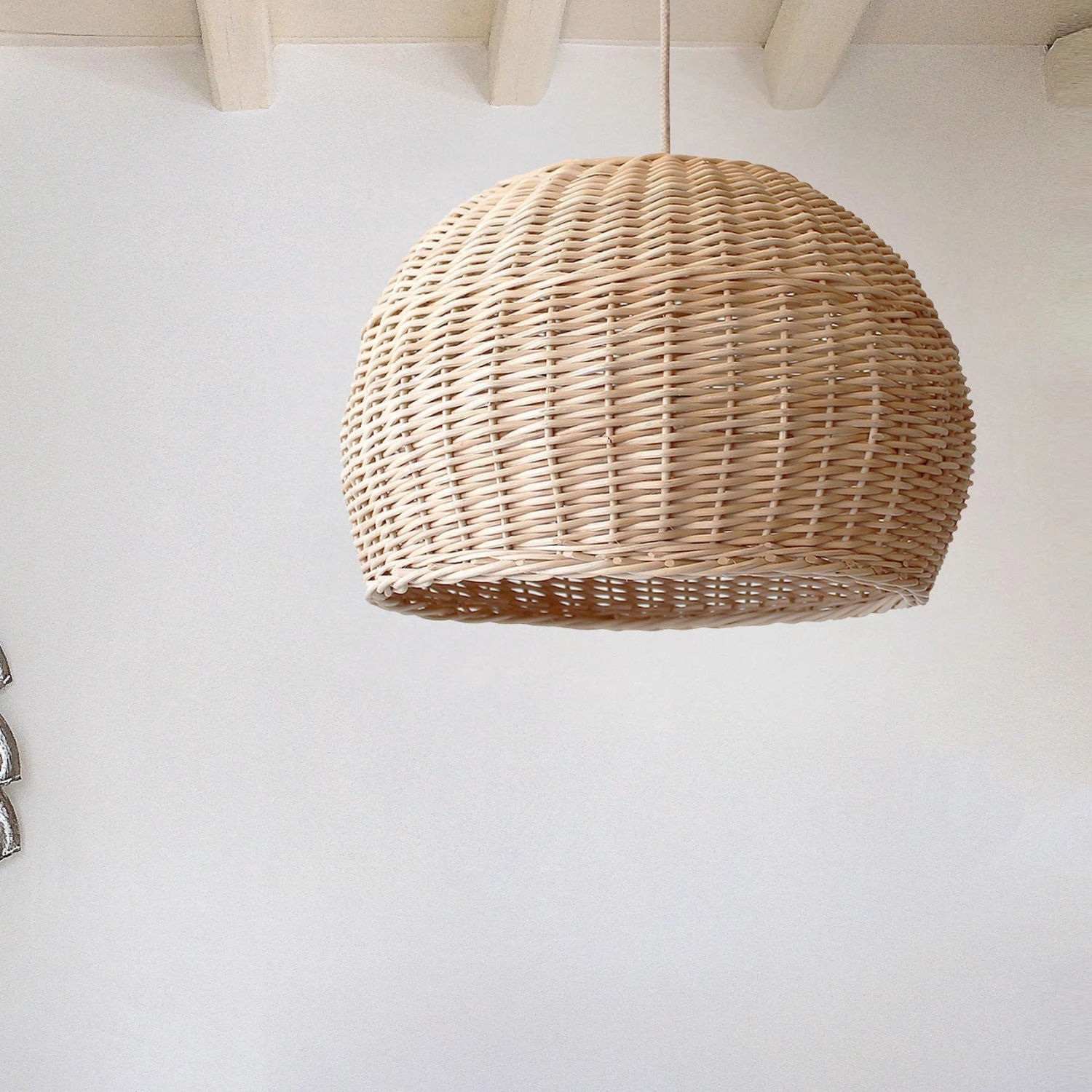 - This rattan pendant light has a large size and can decorate any place of your home giving a boho rustic touch and a romantic aesthetic.